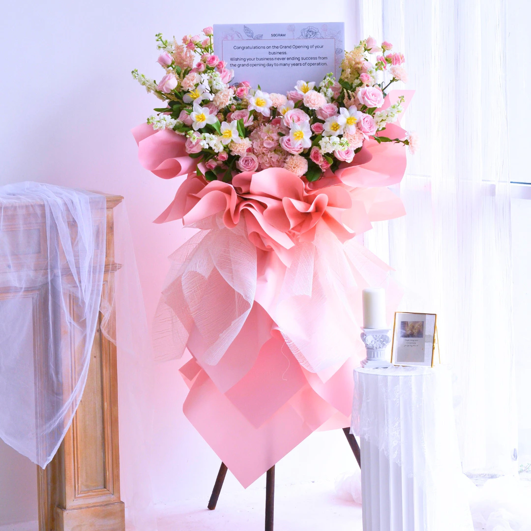 Step into a world of pure enchantment with “Pink Petals Delight” business opening stand– a captivating flower stand featuring a delightful pink color theme.